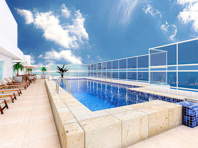 Excelente aproveitamento dos cômodos com ampla varanda gourmet, além do espaço de lazer com piscina, espaço grill, salão de festas, salão de jogos, academia, brinquedoteca e uma vista panorâmica de toda a Orla Santista.
